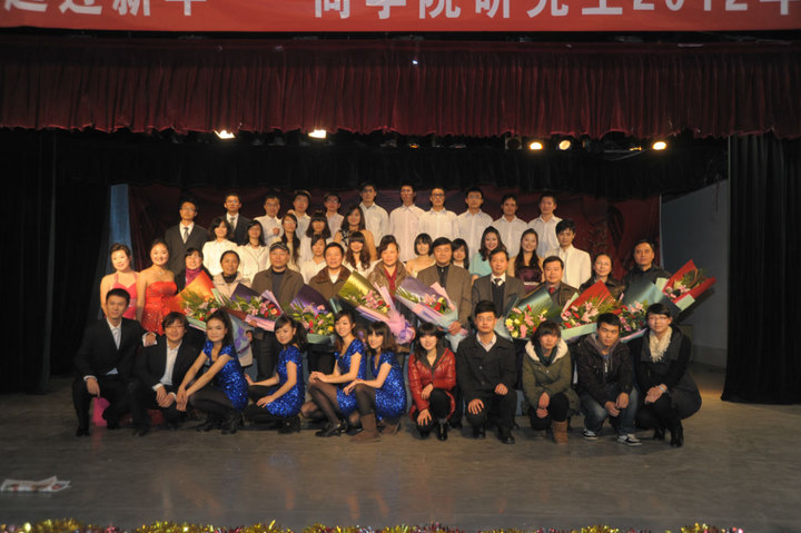 激情绚丽的开场舞《Hello Baby》拉开了晚会序幕。晚会共分三个篇章,第一篇章“师生Dancing Party”,由研究生导师和同学们一起和着《夜来香》、《万水千山总是情》、《友谊天长地久》的乐曲在舞池中翩翩起舞,共度佳节。第二篇章,校艺术团的同学们带来的民乐演奏《虞美人》和MPACC班同学亲情奉献的小品《非诚勿扰》,以及特邀嘉宾研究生部白毅部长和汪雨馨小朋友的精彩表演一起构成了“师生情怀”篇章,师生同台演出,赢得观众的阵阵掌声。第三篇章“快乐元旦”中的歌曲联唱、音乐剧、热舞、小合唱一起将晚会掀到了高潮。由经济学班,技术经济与管理班,国贸班合力奉献的音乐剧《考试》,话剧题材贴近生活,语言诙谐幽默,并寓教于乐,发人省醒。游戏环节中各位老师和同学的精彩表现,使得晚会的气氛更加