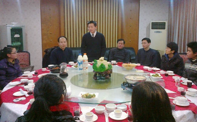 1月20日(农历腊月二十七)晚6点,南校区鸿业楼包厢内暖意洋洋、欢乐祥和,与室外寒冷的天气形成了鲜明的对照。院党委书记胡振华教授、经贸系党支部书记尹华老师、学工办主任李苑老师和马亚旭老师等学院老师代表与德赢vwin体育官网登录2012年寒假留校学子齐聚一堂,共进团年宴。