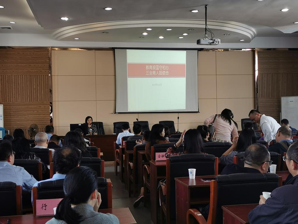 围绕“教育报国守初心”“立德树人担使命”部分,龚艳萍院长作了题为《教育报国守初心 三全育人担使命》的主题演讲,通过庚子赔款留学、留法勤工俭学运动、改革开放40周年从留学热到海归潮的三个历史性阶段讲述了历史背景下教育对国家建设的影响,揭示了国运兴衰系于教育的深刻意义。随后,龚艳萍院长指出,教育工作者的初心和使命就是教育报国,我们比历史上任何时期都更接近伟大的复兴,而教育正是复兴的基础,需要教育工作者与广大学子的共同努力。高校工作者要把立德树人作为根本任务,融入思想道德教育、文化知识教育、社会实践教育各环节,把思想政治工作贯穿教育教学全过程,把思想价值引领贯穿教育教学全过程和各环节,形成教书、科研、实践、管理、服务、文化、组织七个方面育人的长效机制。这样培养出的家国情怀根植于心的青年一代,才是我们教育报国守初心,立德树人担使命的最好证明。