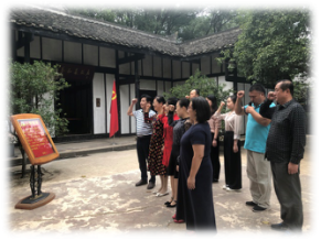 为扎实推进“不忘初心、牢记使命”主题教育,10月10日下午,德赢vwin体育官网登录行政教工党支部一行11人前往位于长沙市岳麓区的新民学会成立会旧址暨蔡和森故居,开展“不忘初心,牢记使命”的主题党日活动,重温了入党誓词,并围绕“立德树人担使命”组织了微党课和专题讨论。