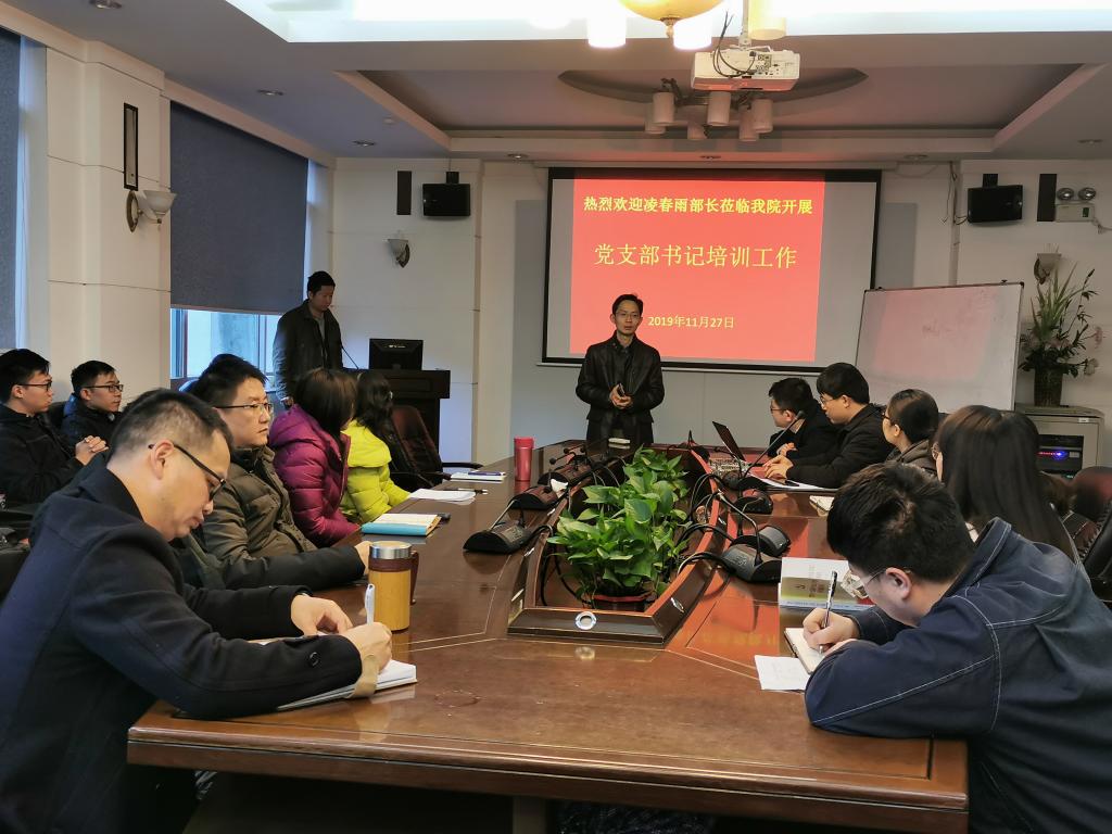 为深入贯彻落实“不忘初心、牢记使命”主题教育,加强基层党组织建设,深入落实“五化建设”,增强党员干部纪律,坚定理想信念,发挥好基层党支部的战斗堡垒作用,提升基层党支部书记的政治素养和业务能力,2019年11月27日,德赢vwin体育官网登录组织召开党支部书记培训,德赢vwin体育官网登录组织部凌春雨部长受邀出席,并围绕“如何落实党支部’五化’建设”为题,为德赢官网党支部书记作系统培训。本次会议由任胜钢书记主持,全体党支部书记参与培训。