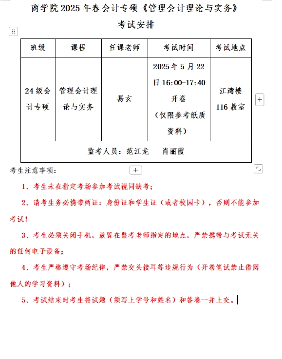 德赢vwin体育官网登录2025年春会计专硕《管理会计理论与实务》考试安排0522.doc