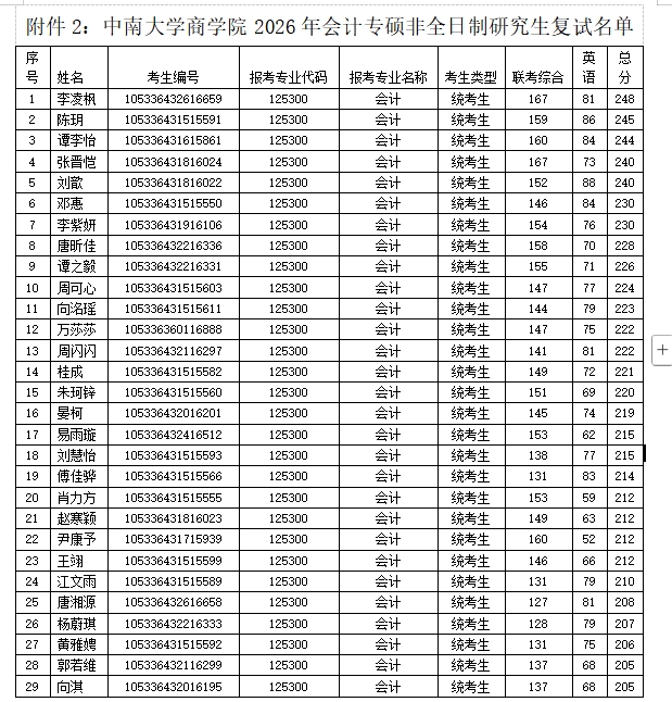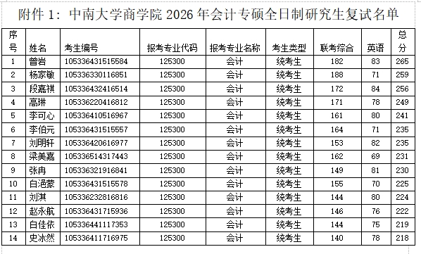 3. 按会计专硕专业考生总成绩排序,从高到低择优录取。