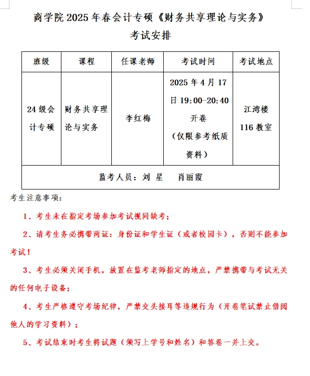 德赢vwin体育官网登录2025年春会计专硕《财务共享理论与实务》考试安排