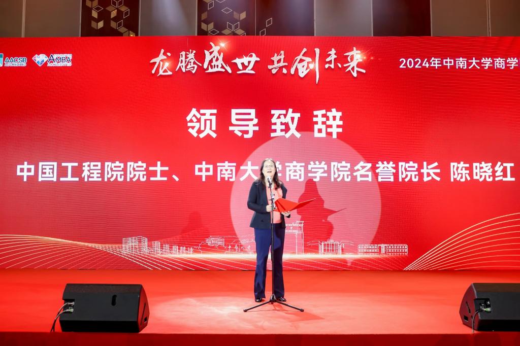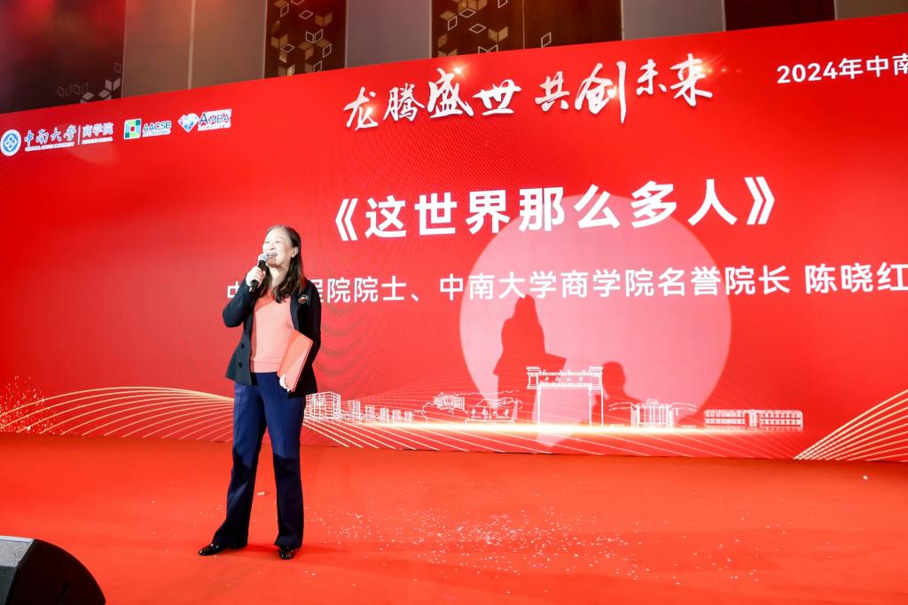 中国工程院院士、德赢vwin体育官网登录名誉院长陈晓红从北京专程赶来年会现场,为广大师生送上新年的祝福,同时,陈院士寄语学子们两点希望:一是深度融合、鼎力支持,助力商院发展。学院的建设源于全体学子的共同努力,也源于中南精神的薪火相承;二是心怀家国、不忘初心,传承商院精神。希望各位学子积极抓住机遇,主动谋篇布局,搭建更多成长平台,助力事业茁壮发展。