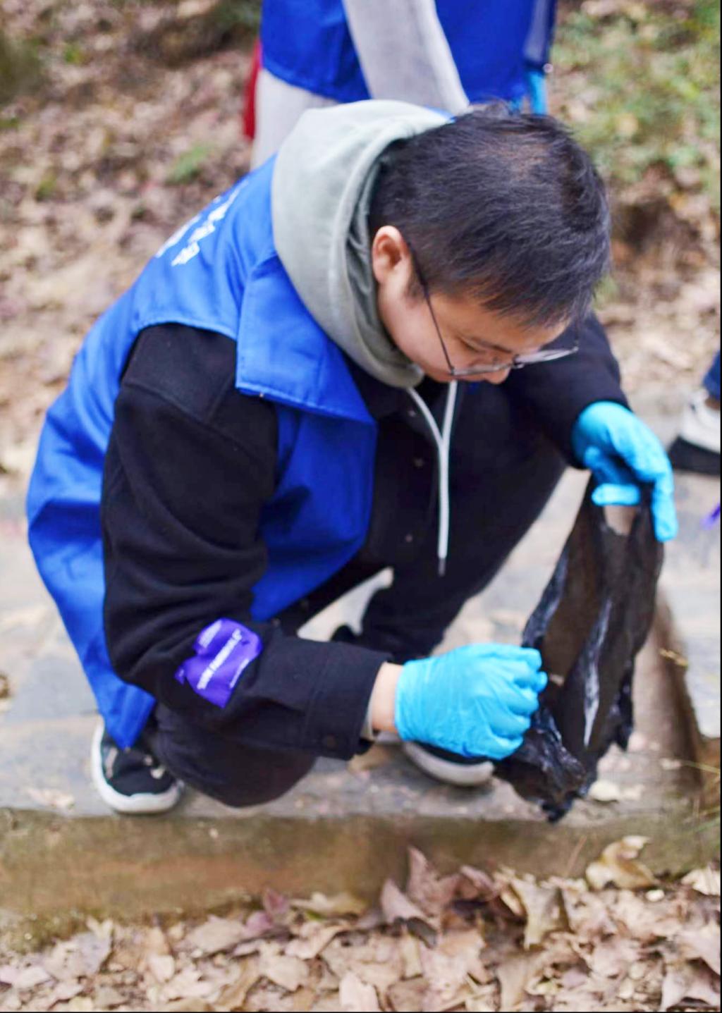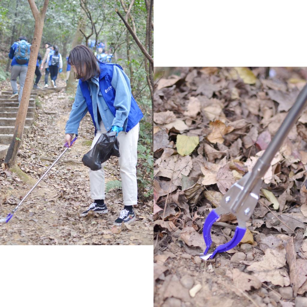 活动中,志愿者们分工明确,行动有序,重点清理了饮料瓶、烟头、食品包装塑料袋等垃圾。他们有的在前往岳麓山顶的台阶上俯身捡起石阶上的果皮纸屑;有的用垃圾钳夹起掉在石缝中的饮料瓶;有的通过团队协作探身拾起丢在上坡上的塑料包装......大家身着蓝色志愿者服,携带着垃圾袋和垃圾钳,一路爬山,一路捡垃圾,俯身美化环境,迈步强身健体。