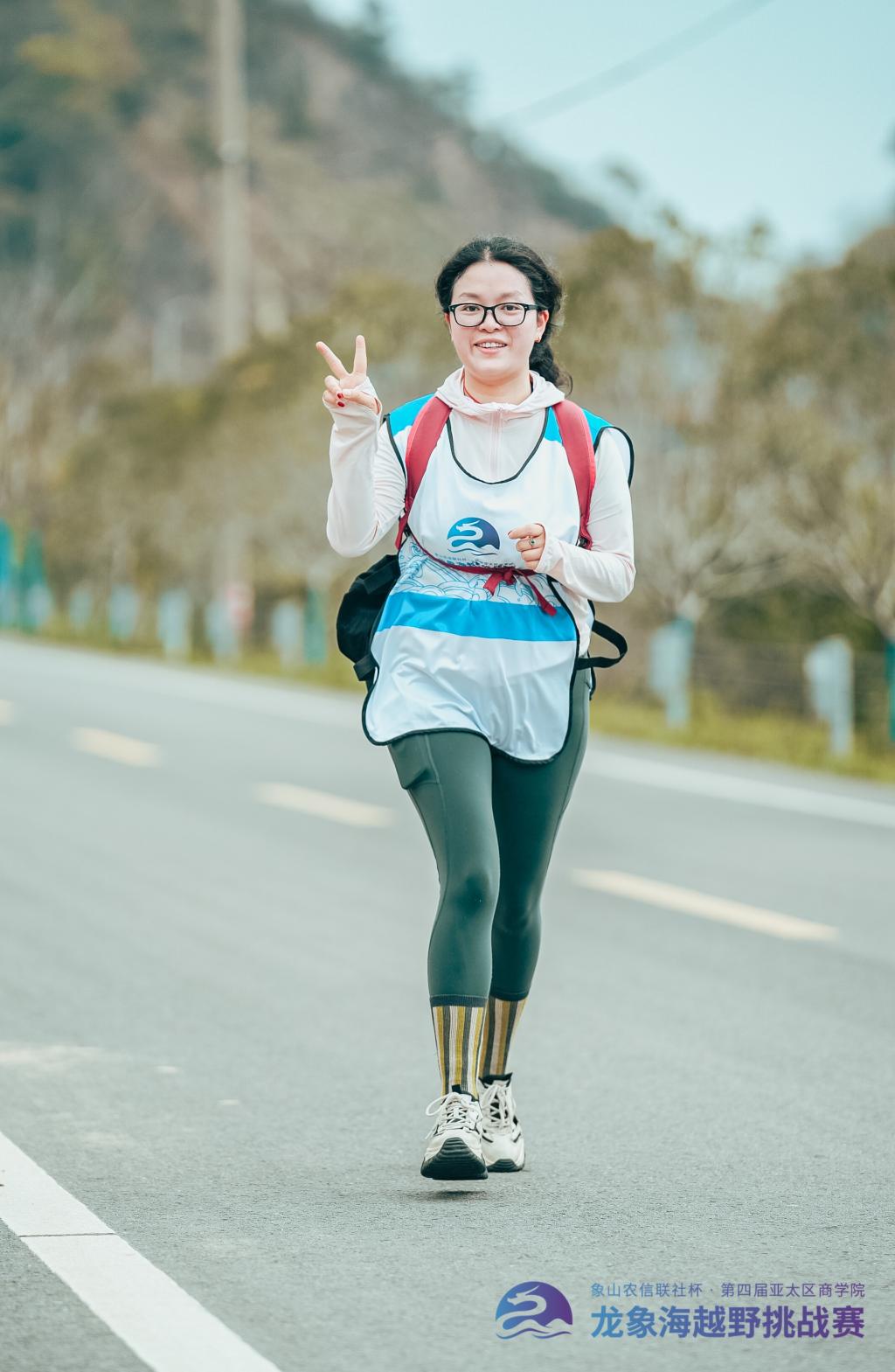 袁津津:有幸能参加这次龙象海越野挑战赛,我非常感谢学校提供连接这个平台的机会,能在挑战自己的同时,结识更多来自全国各地的优秀小伙伴们。非常感谢同行的小伙伴们,赛前的宽慰,让我放下焦虑,踏实训练,赛中的鼓励与支持,我做到了顺利完赛,最后能拿到B组女子第六名的成绩,真的是喜出望外,谢谢自己赛前坚持训练,赛中不服输,坚持到底。