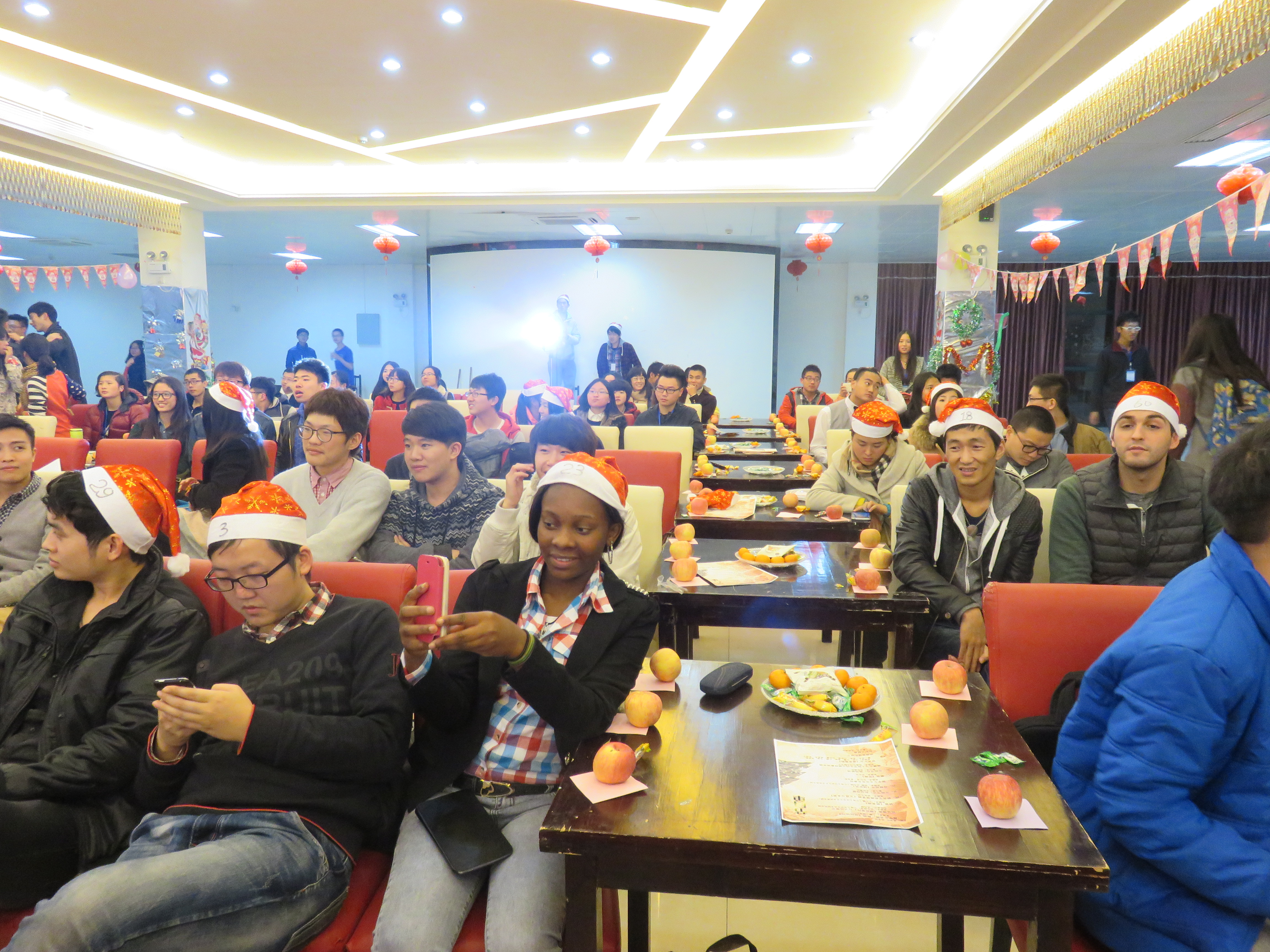 当晚7点半,德赢vwin体育官网登录2015年留学生(港澳台)圣诞新年晚会在德赢vwin体育官网登录新校区学生活动中心隆重举行。近百余名留学生、港澳台学生以及校国际合作与交流处、学院领导和老师等中外师生共聚一堂,迎接新年的到来。晚会形式多样、精彩纷呈,异域风情和中国传统艺术巧妙结合,为大家带来了一场各国文化与中国文化交融的盛宴。来自不同国家的留学生和港澳台学生分别表演了舞蹈、短剧、歌曲等类别的精彩节目。在舞蹈《圣诞舞步》中,新年晚会拉下了帷幕,全体师生上台合影留念,为新年晚会画上了一个圆满的句号。