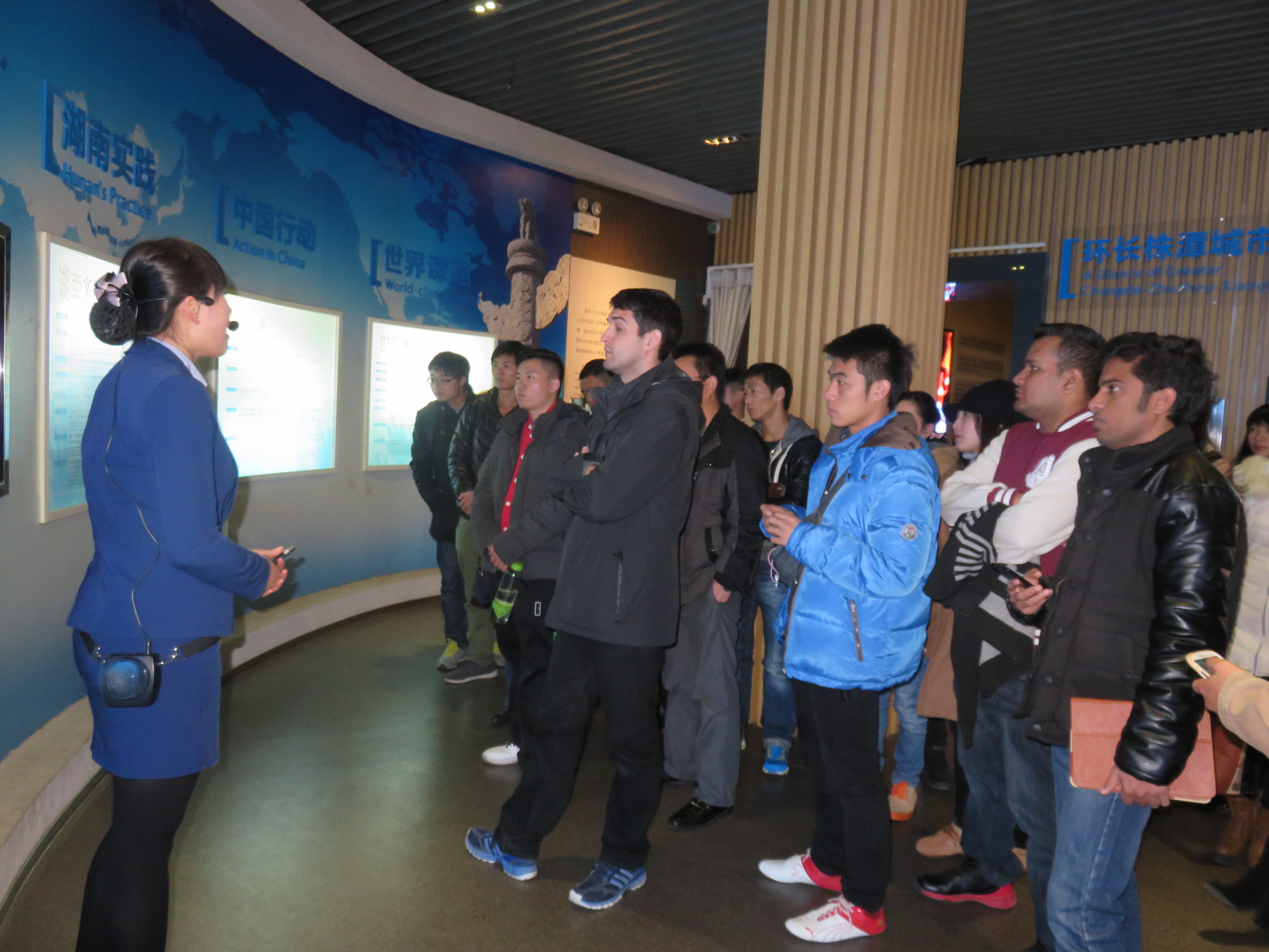 德赢官网留学生及港澳台学生规模越来越大,MBA留学生也逐年增加,今年有九位学员分别来自老挝、韩国、墨西哥等国家。日前,为了丰富德赢官网留学生(港澳台)的课余文化生活,加强师生之间的交流沟通,德赢官网MBA中心和研工办联合组织全院近40余名留学生(港澳台)于12月23日下午进行参观橘子洲头“长株潭两型社会展览馆”等一系列交流活动