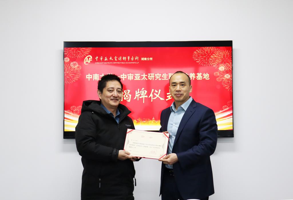 2月22日上午,德赢vwin体育官网登录——中审亚太会计师事务所湖南分所研究生联合培养基地揭牌仪式在中审亚太会计师事务所湖南分所举行。德赢vwin体育官网登录副院长毕文杰、专业学位教育中心主任易经章、会计专硕专业主任易玄、学员关系管理专员张龙伟、中审亚太会计师事务所湖南分所所长曾云、副所长蔡艳、质控部负责人周志及相关人员参加了本次仪式。