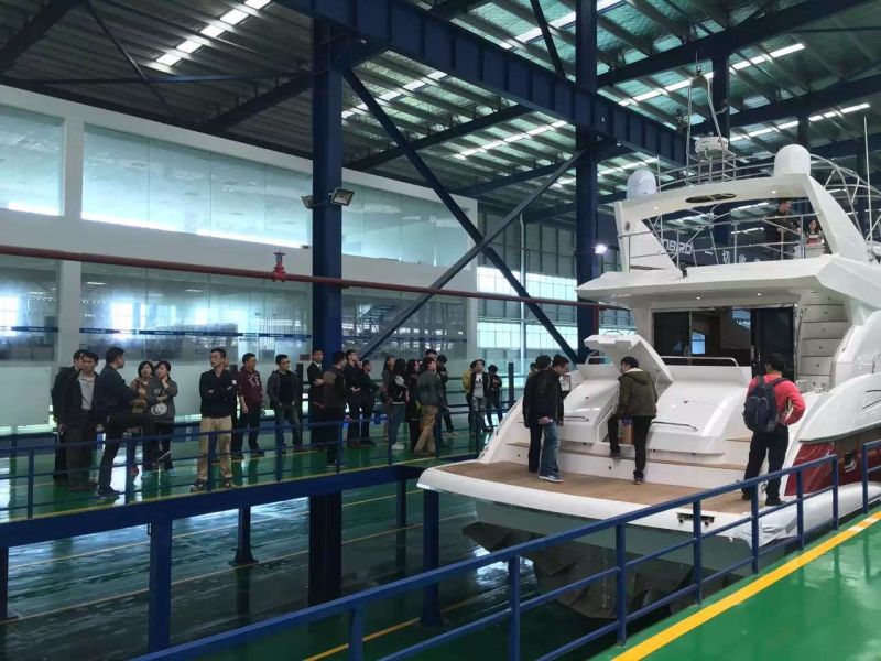 当天10:00,我们安全抵达太阳鸟游艇公司所在地,刚进入公司大厅,立刻被摆放着的各种游艇模型所吸引,似进入博物馆一般,同学们热情十分高涨,边看边互相交流,每一位同学都不忘拍照留作纪念,感叹于中国造艇技术的先进。期间我们进入一台接近完工的豪华型游艇内部参观,装饰精致,格局设计巧妙合理,卧室、卫生间、KTV、休息室以及甲板阳台的结构设计与游艇整体造型完美融合,呈现一种与时俱进的科学设计水平,奢华高调的品味。外面厂区成品与半成品摆放分门别类,错落有致。我们通过此次参观,一致认为太阳鸟游艇在生产运营上的设计与管理呈现出较高的水平。