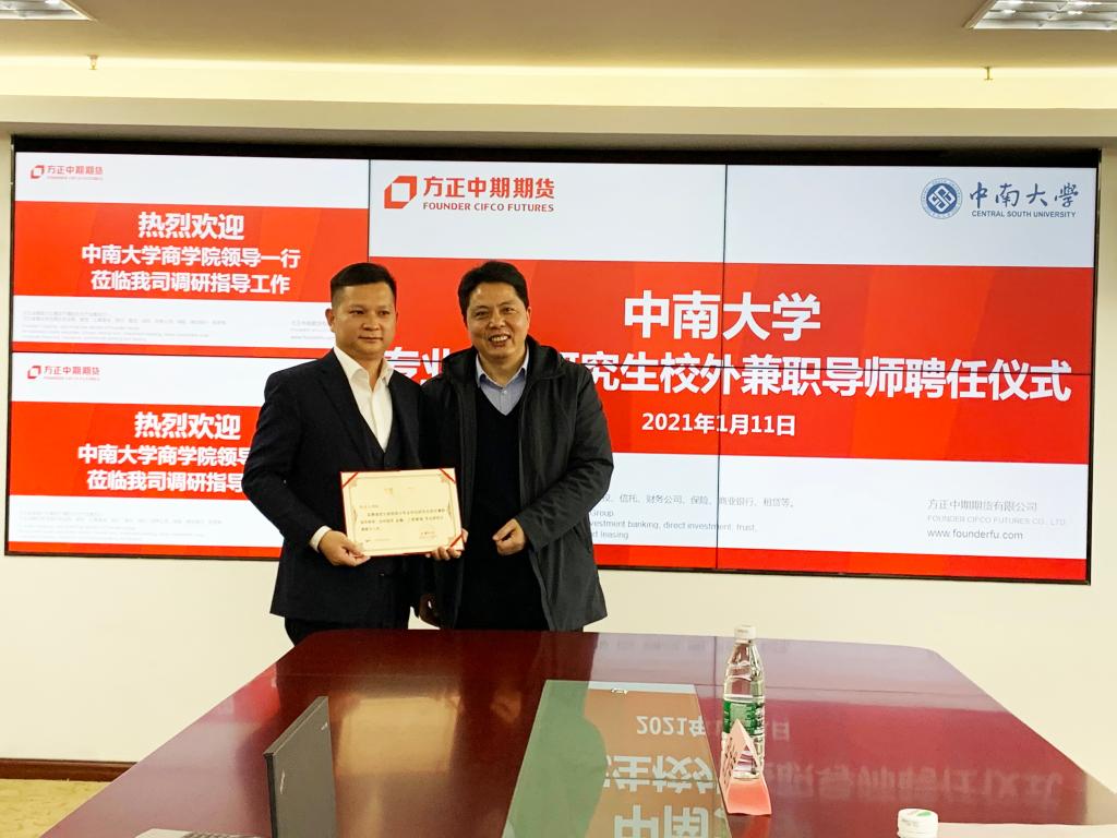 //易经章为德赢vwin体育官网登录•方正中期期货研究生联合培养基地揭牌