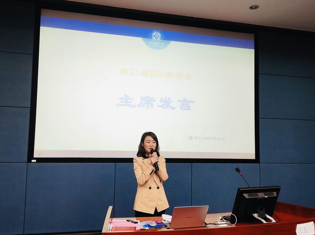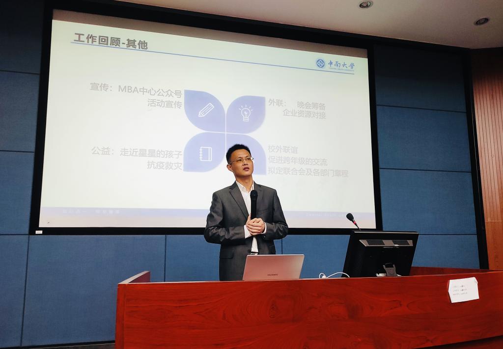 随后第20届MBA联合会主席薛志刚对过去一年的工作进行总结回顾,在薛主席的带领下,在第20届联合会全体成员共同努力下,第20届MBA联合会取得了一系列丰硕的成果,薛主席感概万千,希望第20届MBA联合会的精神能得到传承和发扬!