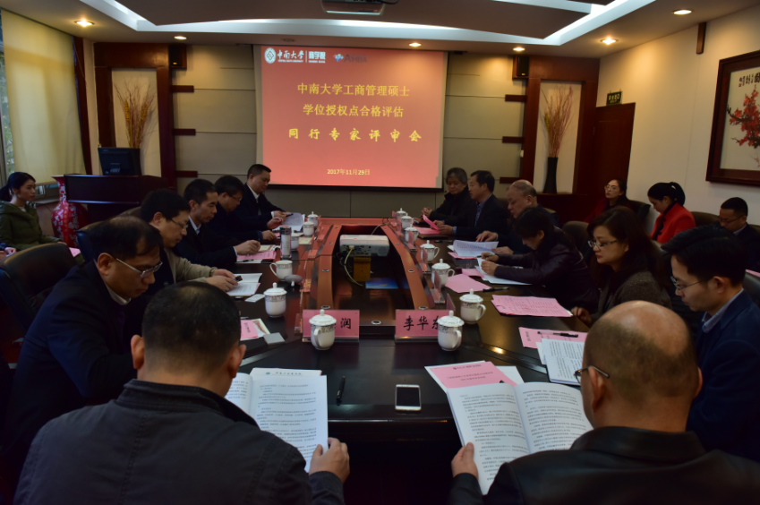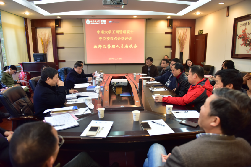 根据国务院、教育部关于印发《学位授权点合格评估办法》的通知(学位[2014年]4号)和《德赢vwin体育官网登录学位授权点合格评估工作方案》(中大研字[2015年]10号文件)的相关要求及安排。在预先评审相关材料的基础上,中山大学李新春教授、合肥工业大学梁昌勇教授、重庆大学龙勇教授、湖南省轻工盐业集团李志勇总经理和湖南湘投控股集团有限公司、湖南国企改革发展基金管理有限公司蔡神元董事长莅临德赢vwin体育官网登录进行现场评估。