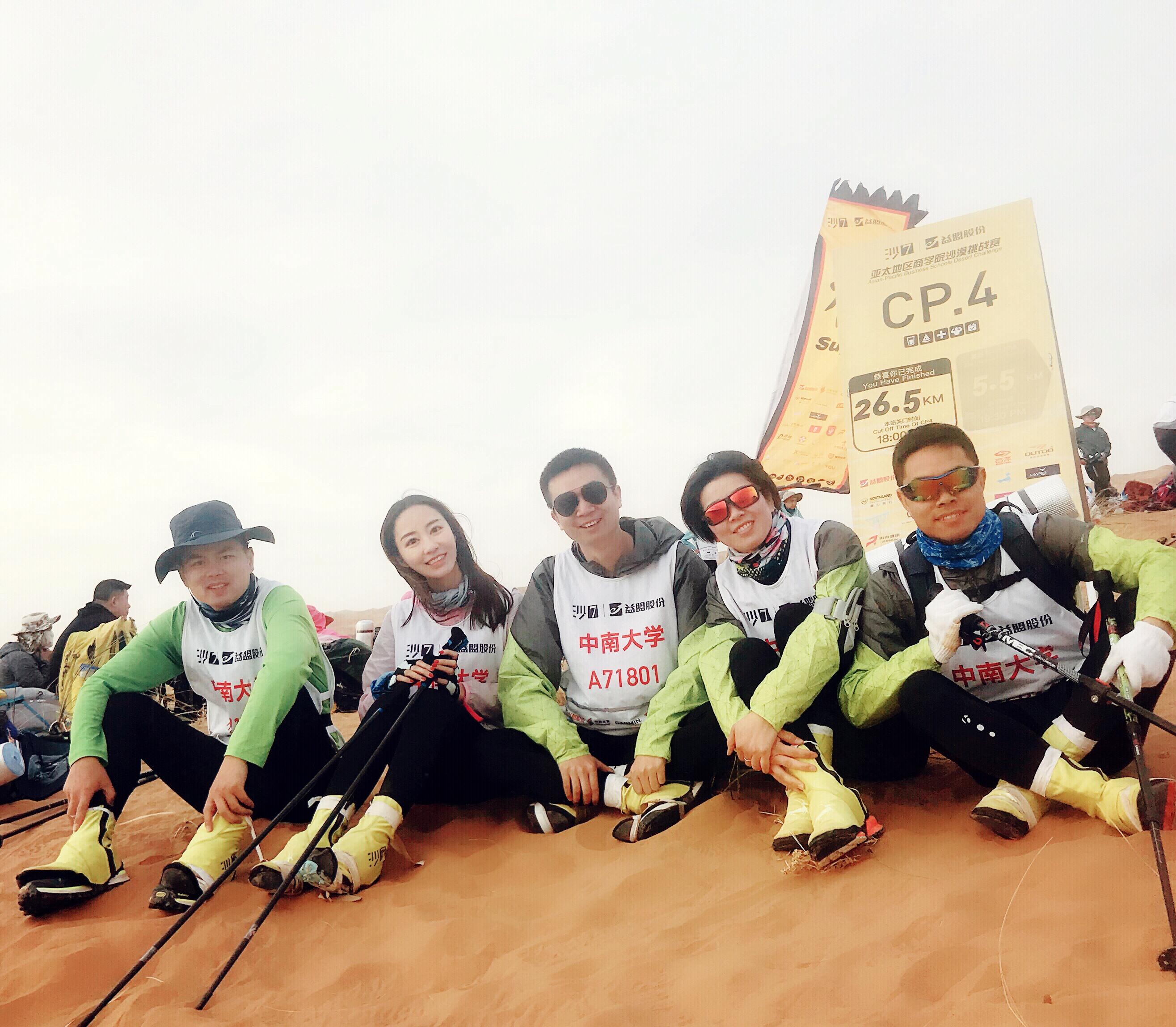 征途中黄沙满地,困难重重,沙丘的松软呈送给队员们的是“行一步,退半步”的挑战。团队成员相互鼓励,用温情与团结共同化解赛程的艰辛。“亚沙一次,沙友一生!”焦君的勇猛,张玲、杨倩的顽强,中南学子顽强拼搏的精神在腾格里沙漠中绽放夺目的光芒! 比赛期间,张颖副院长、杨秋娟主任多次关心队员们的身体状况和精神状态,为队员们加油鼓气,因为学校坚强的后盾,所有的队员才会心无旁骛,勇往直前。