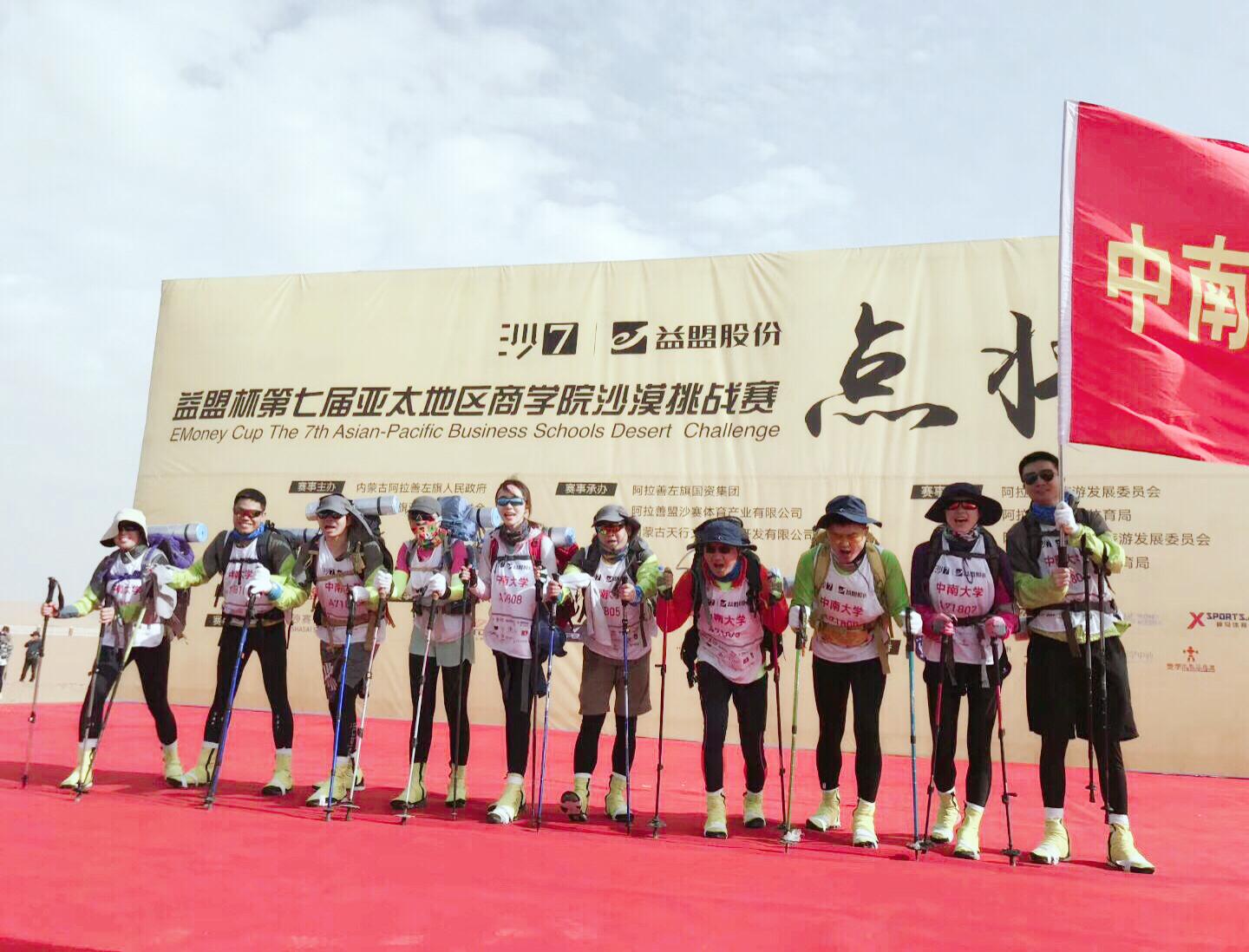 长驱千里聚大漠,沙场点将尘飞扬。千栾万嶂无穷尽,黄沙飞脸勇者强。 2018年4月29日-5月1日,第七届亚太地区德赢vwin体育官网登录沙漠挑战赛(简称“沙七”)在内蒙古阿拉善盟腾格里沙漠举行,赛事吸引了来自中国大陆、港澳台、新加坡、英国、澳大利亚等地区的97所知名德赢vwin体育官网登录约2100名MBA学子参加。比赛共分3天,总计完成70公里的沙漠徒步挑战。这是一场挑战自我的赛事,也是MBA精英们的第二课堂。 德赢vwin体育官网登录第二次组队参赛,沙七代表队由马超、焦君、杨倩、张玲、王燕、林标春、齐伟、范训炜、彭劲、周子傲、喻华谦等14人组成,用脚步丈量国土的坚实,用勇气挑战生命的顽强,用拼搏展示中南的风采。