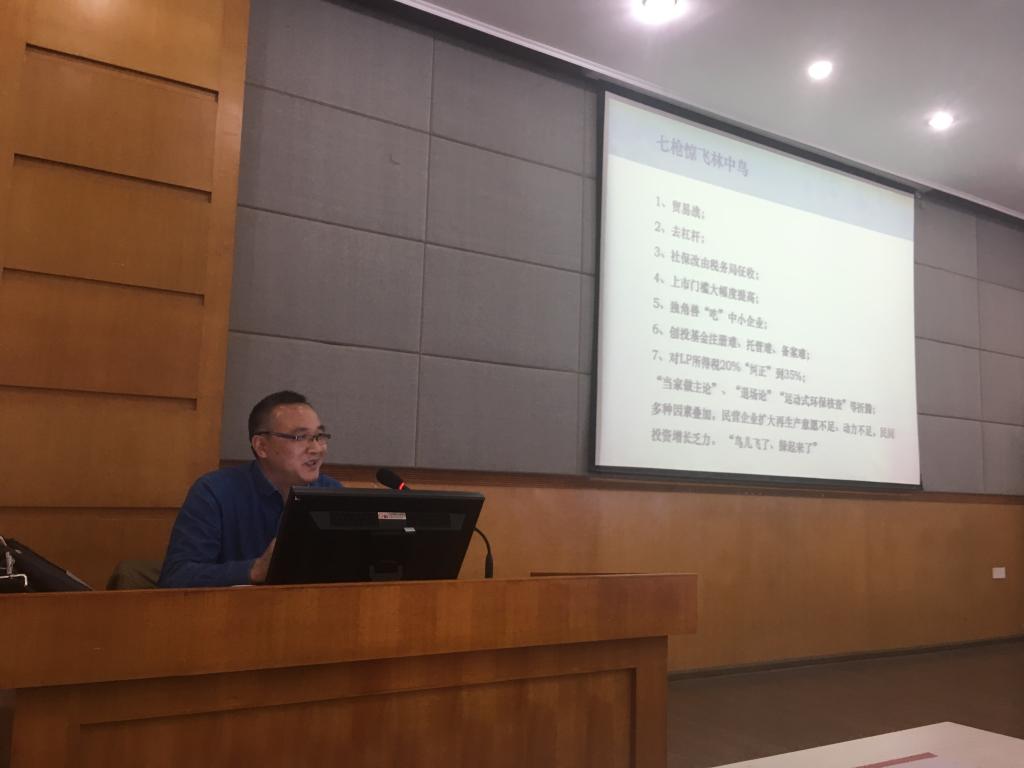 李水龙先生以“七枪惊飞林中鸟”开场,评述了目前贸易战、去杠杆、社保征收、上市门槛、独角兽、创投基金、对LP所得税等热点话题,深入浅出地指出在多种因素叠加下民营企业扩大再生产难、动力不足、民间投资增加乏力等一系列问题。在介绍投资行业概况时,李水龙先生指出,目前二级市场市值低于净资产的公司很多,一级市场“资本寒冬”成了热搜,一二级市场倒挂严重,今年前三季度募资基金出现严重下滑。