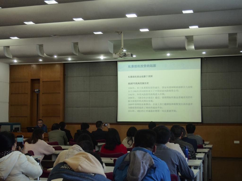 私募股权投资是推动科技创新成果转化是国家创新战略实施的重要力量,对我国经济进入新常态、转型升级具有重要意义,感谢李水龙先生给我们带来的精彩学术讲座,本次讲座在一片热烈的掌声中圆满结束。