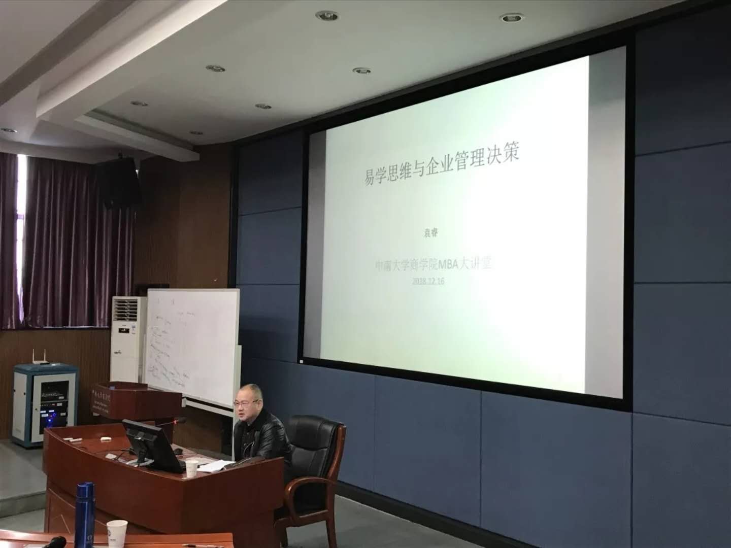 12月16日下午4点,民建湖南省委经济与法律委员会委员、长沙市政协第十届委员会经济科技委员会副主任、湖南潇湘不动产投资管理有限公司董事,湖南金港投资担保有限公司董事、总经理袁睿先生应邀来德赢官网进行学术讲座。袁睿先生以“易学思维与企业管理决策”为题为大家带来了精彩纷呈的学术讲座。讲座由尹华副教授主持,MBA中心老师和各年级MBA学员共同聆听了本次讲座。