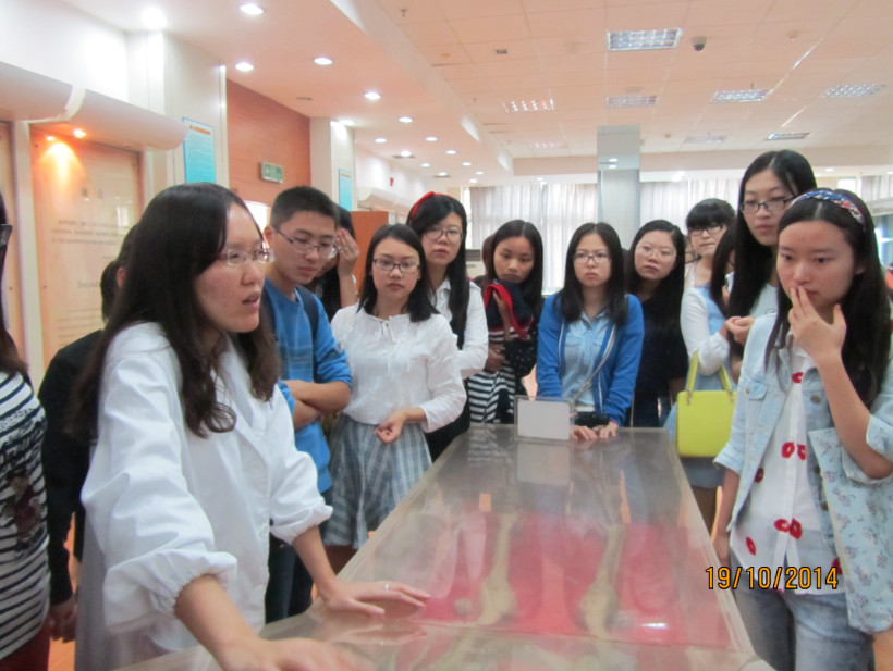 经过半小时车程,校车顺利抵达目的地——德赢vwin体育官网登录湘雅医学院生命教育基地,在二楼的展览厅里,讲解员们热情地为参观的同学们讲解,耐心地带领同学一个一个展区的参观。最让人印象深刻的是那个17岁,身长2米43的女巨人,她静静地躺在透明棺材里,皮肤和骨骼被分为了两个部分分别存放在左右两侧,她逝世后决定将遗体献给国家用于医学研究,将生命的最后一丁点火星燃烧殆尽,当同学们看到各种人体器官毫无保留地呈现在了面前时,不得不感叹,原来人体的内部如此复杂和奥妙。讲解员们在介绍标本的同时,还以专业的角度向我们阐释了平时容易忽视的小细节。例如一定要按时吃早餐,不可过度吸烟等等。