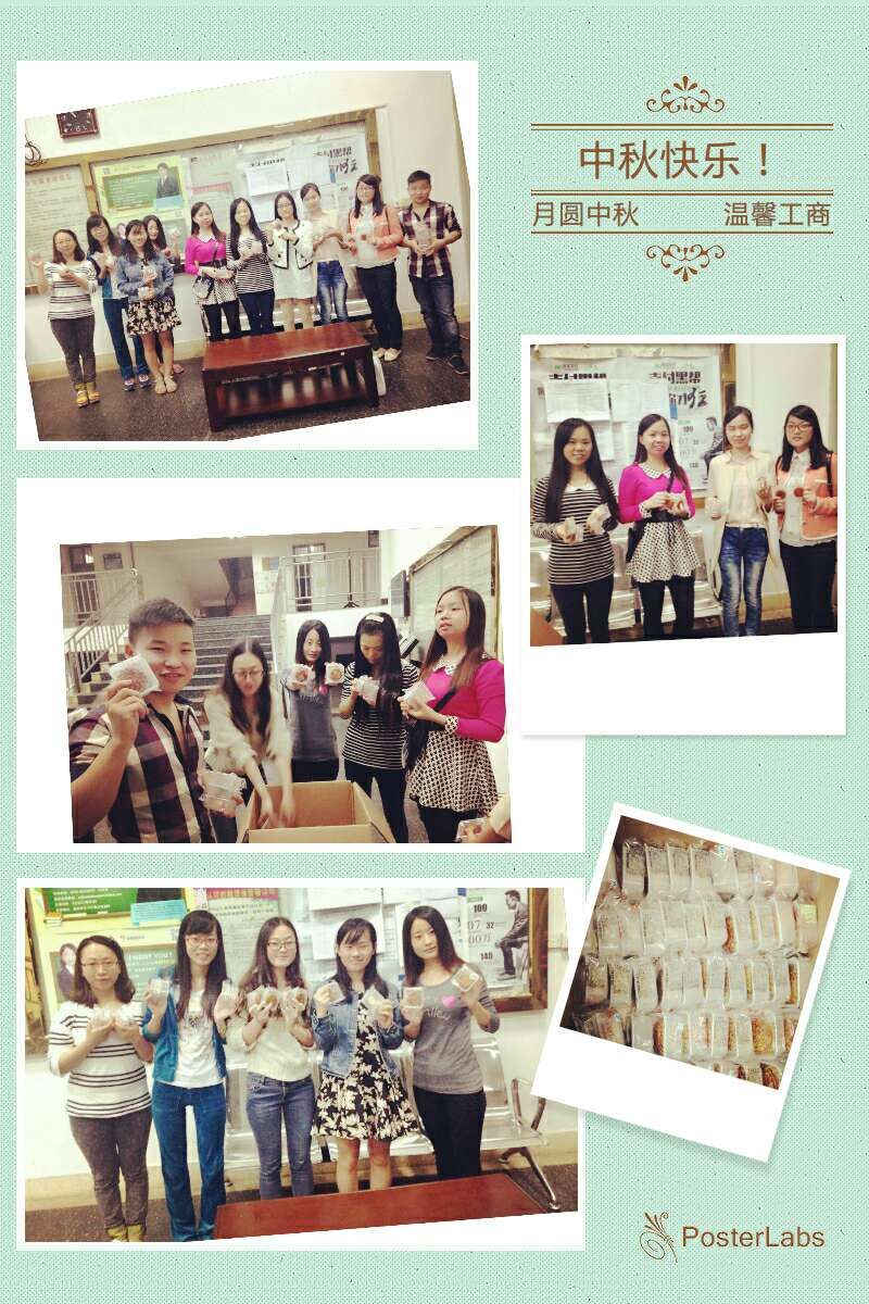 14级应用经济学班级则开展了中秋送温暖活动,班委们带上零食和月饼,走访实验室、学生寝室,看望正在学习和考证的同学们,给他们送去节日的祝福和班级的温暖。